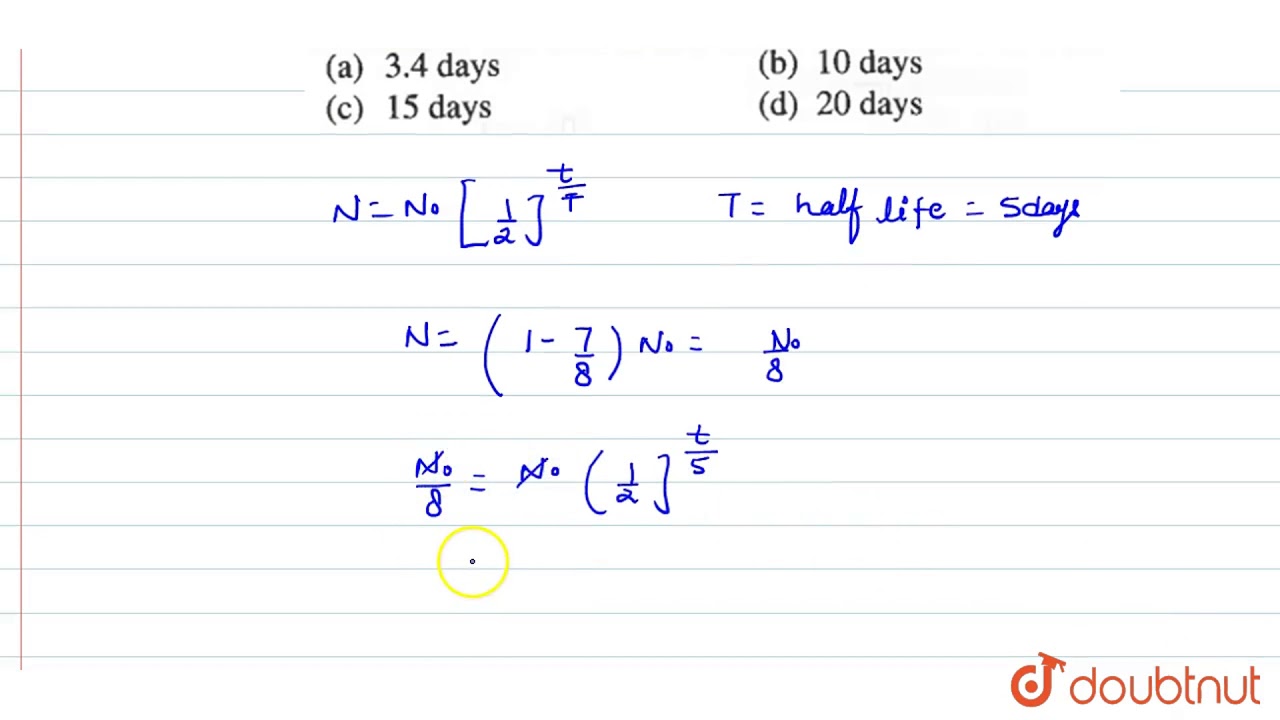 Bi 210 Has A Half Life Of 5 Days The Time Taken For 7 8 Of A Sample To Decay Is